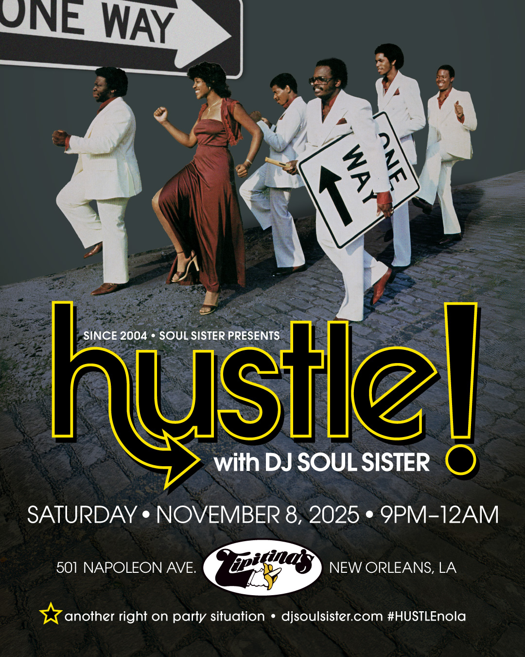 November 8 / HUSTLE! with Soul Sister, Tipitina’s, 9pm – info | tickets | flyer