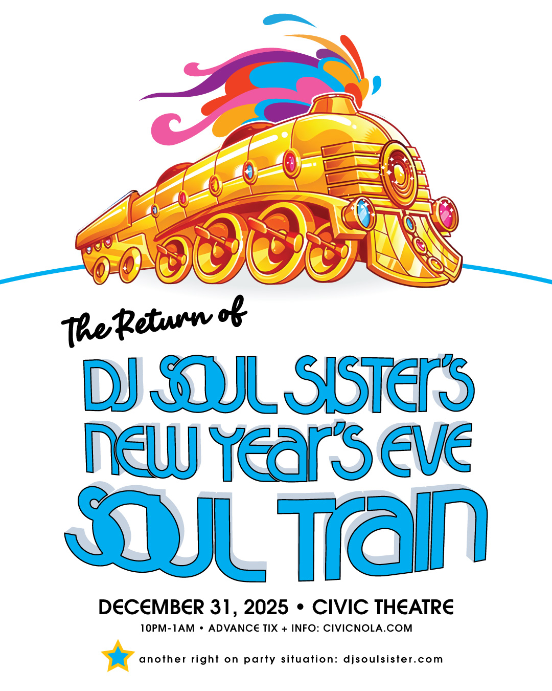 December 31 / The Return of DJ Soul Sister’s Annual New Year’s Eve Soul Train, Civic Theatre, 10p-1a – info | flyer | tickets