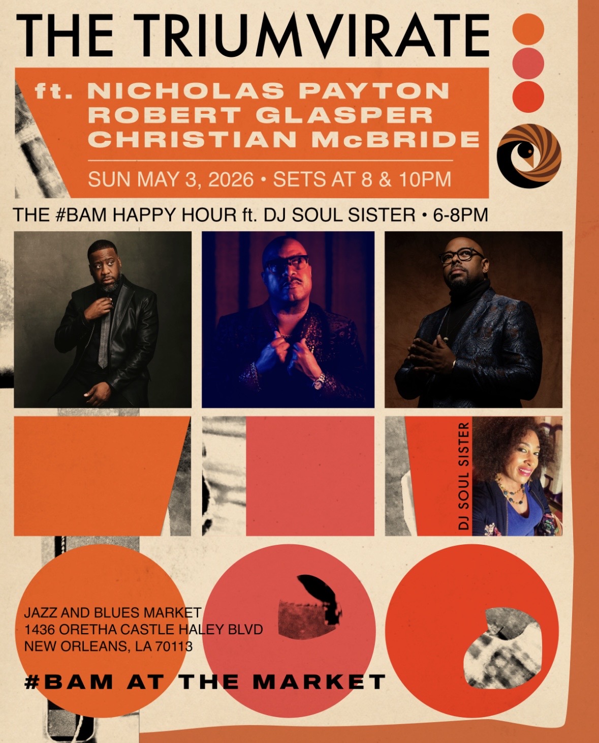 May 3 / Opening for Robert Glasper, Christian McBride, and Nicholas Payton @ Jazz & Blues Market, 6-8pm happy hour – tickets | flyer